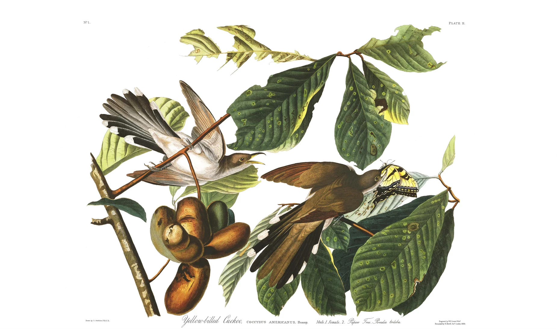 John James Audubon, Yellow-billed Cuckoo. Courtesy of the John James Audubon Center at Mill Grove, Montgomery County Audubon Collection, and Zebra Publishing.