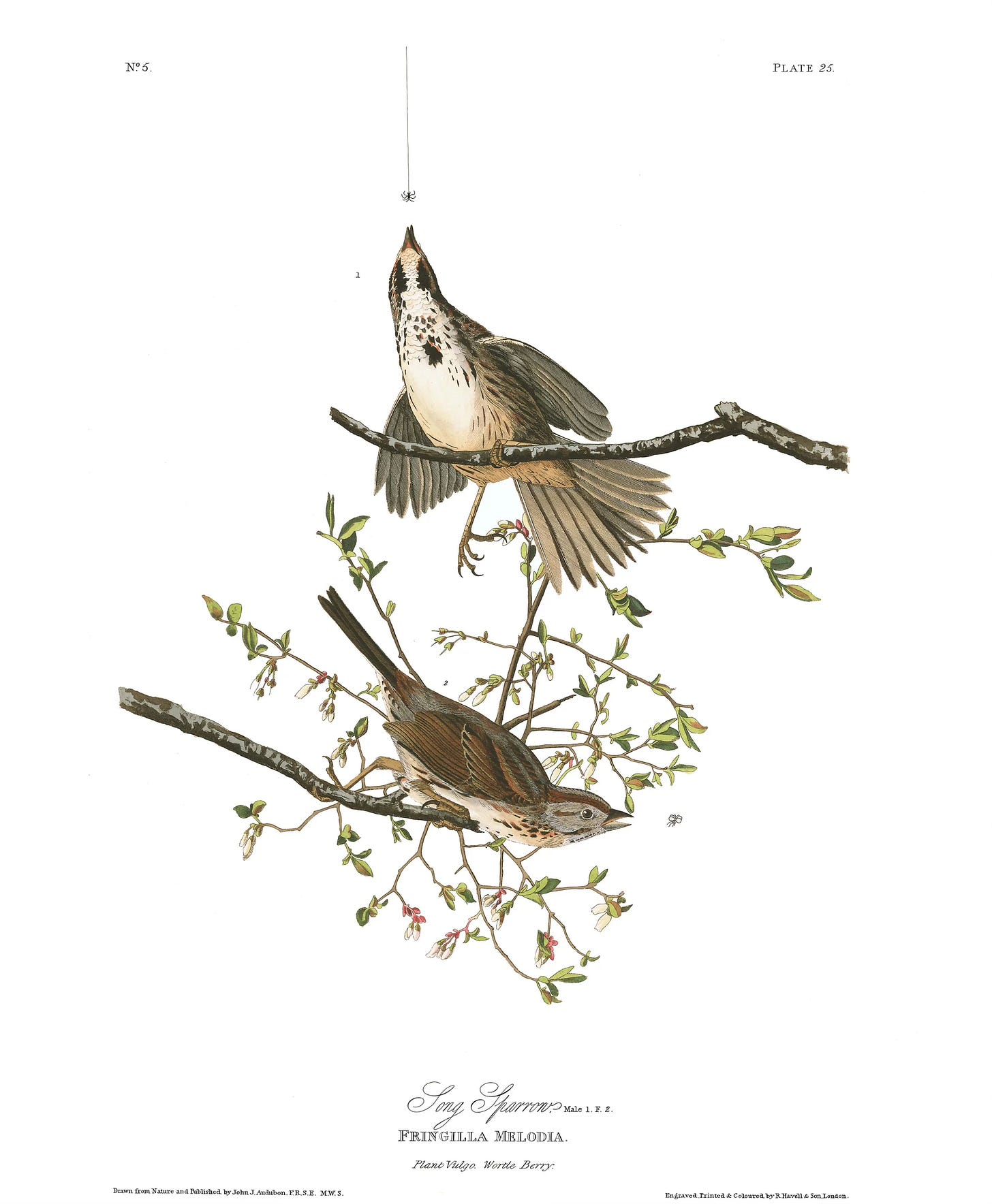 John James Audubon, Song Sparrow. Courtesy of the John James Audubon Center at Mill Grove, Montgomery County Audubon Collection, and Zebra Publishing.
